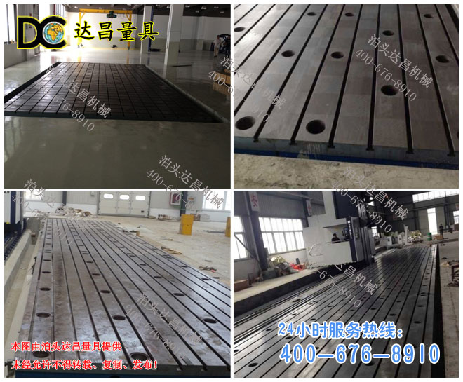 二、鉚焊平板(鉚焊平臺)材質:高強度鑄鐵HT200——300,經過兩次人工處理(人工退火600度——700度和自然時效2——3年)使用該產品的精度穩定,耐磨性能好。